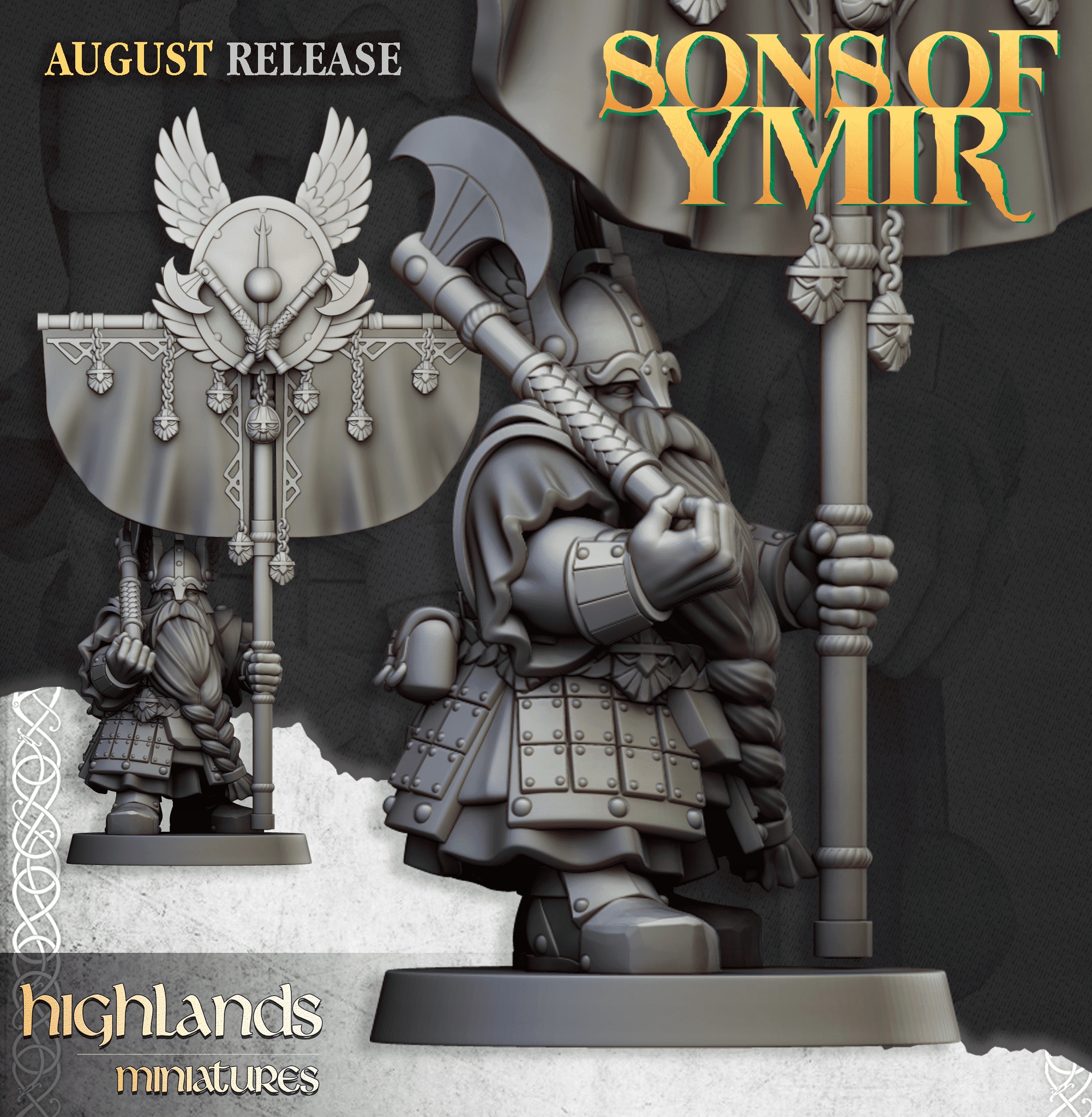 Dwarfs Veteran Bannerman - 3D Printing Service Figurices for RPG or Battle Games