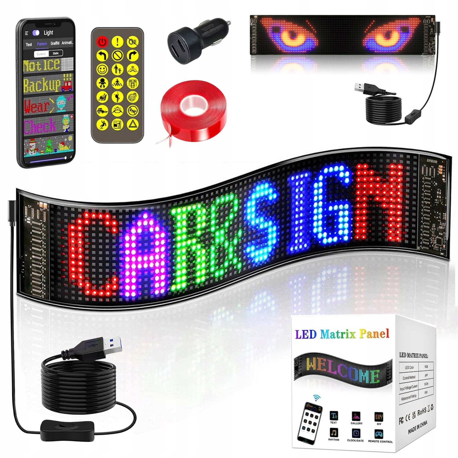 ГНУЧКА ЦИФРОВА НАКЛЕЙКА СВІТЛОДІОДНИЙ ДИСПЛЕЙ НА СКЛО АВТОМОБІЛЯ APP PROGRAMMABLE