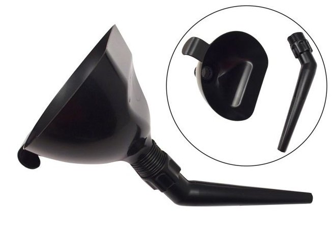 Гнучка воронка з фільтром. Форма воронкоподібної чаші: злегка приплюснутий еліпс. Додатково має пластиковий гачок. Воронка має вбудований фільтр, який при необхідності можна зняти та очистити. Ідеально підходить для перекачування палива, бензину, масел тощо.