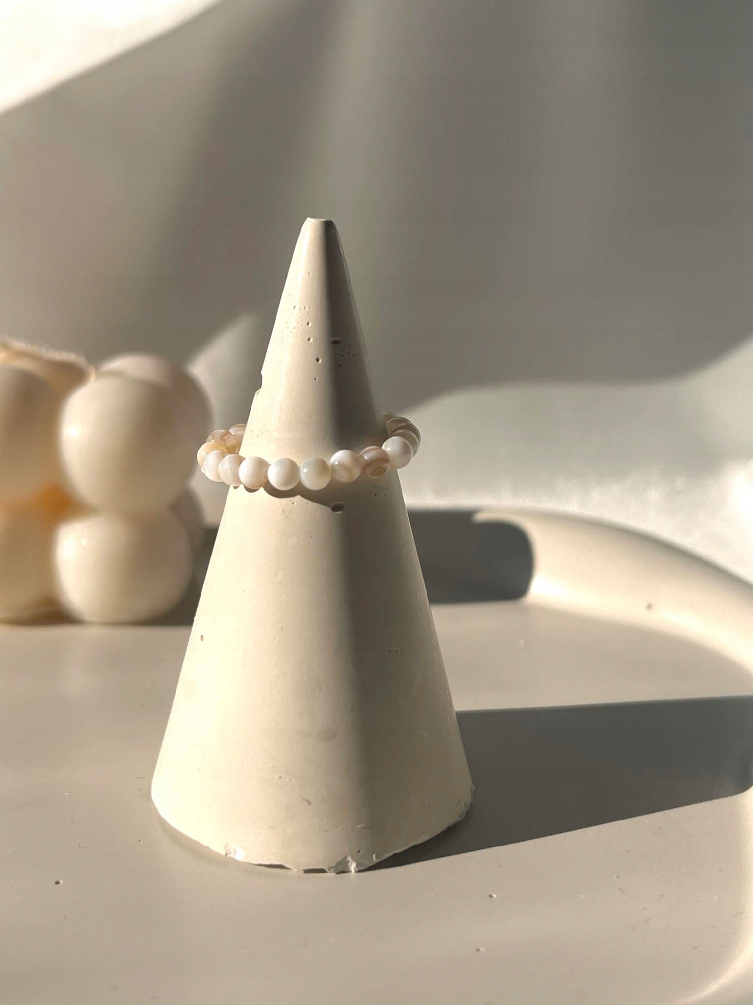 ЕЛАСТИЧНА КІЛЬЦЕ РУЧНОЇ РОБОТИ, ПЕРЛАМУТ + ШКАЛУБКА ТА ПРИСВЯТА