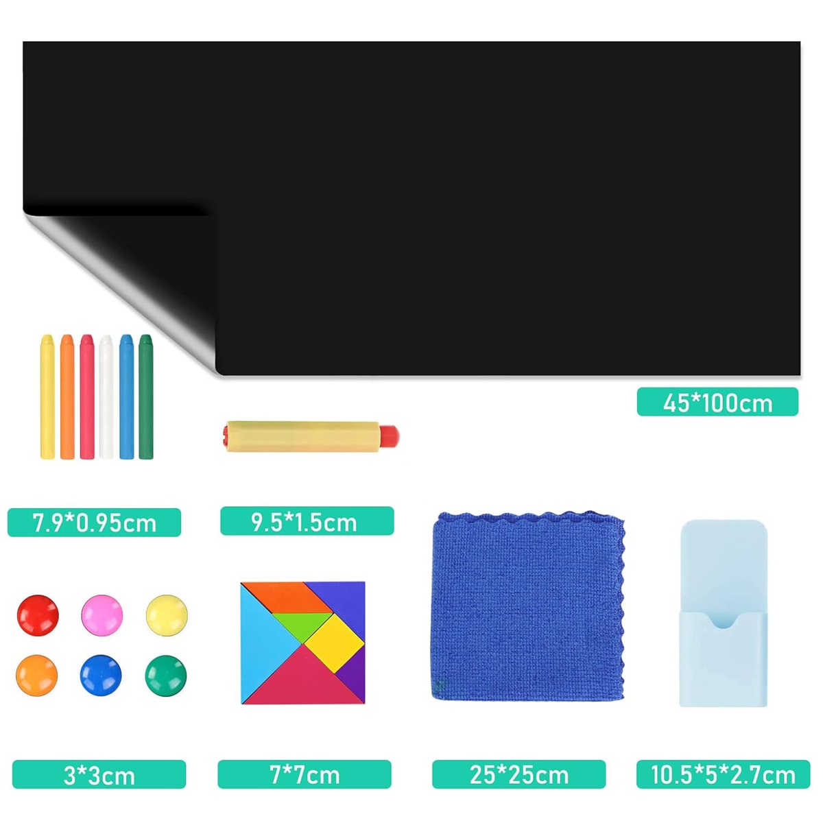 - 🖍️Завдяки самоклеючій задній частині він за секунди перетворює будь-яку гладку плоску поверхню без пилу на дошку. Його можна легко зняти, не пошкоджуючи поверхню.