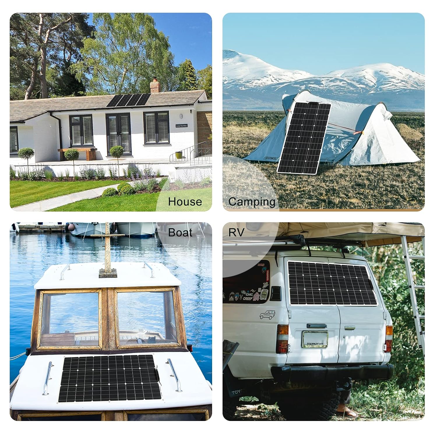 ШИРОКЕ ЗАСТОСУВАННЯ: для фургонів, портативних електростанцій, човнів, вітрильників, яхт, вантажівок, автомобілів, автобусів, кабін, гольф-карів або будь-якої нерівної поверхні. Легке та нескладне збирання.