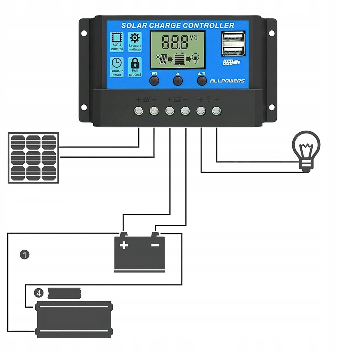 Сонячні панелі з двома виходами та USB-інтерфейсом, щоб задовольнити всі ваші потреби.
