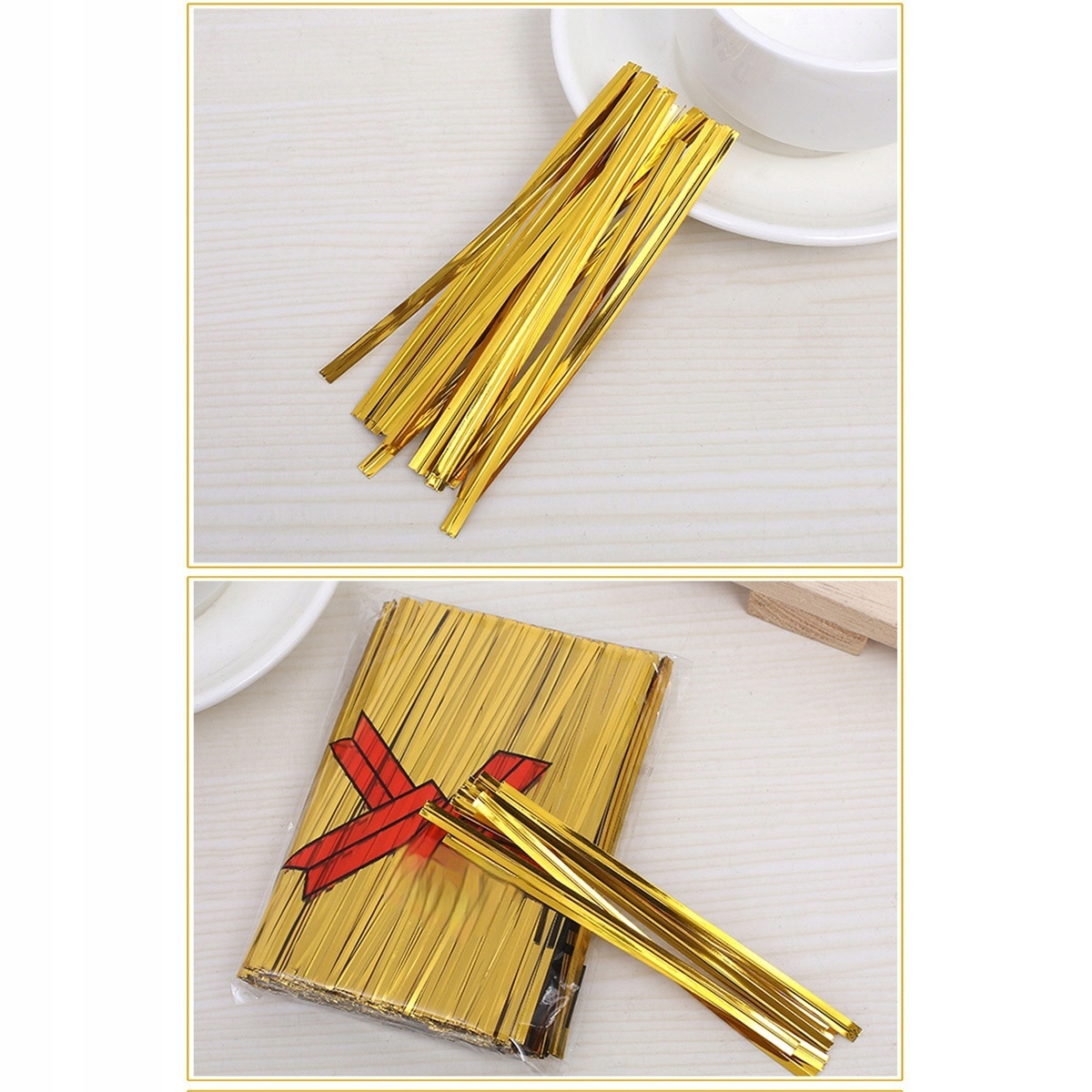 ГНУЧКІ ЖОВТІ МЕТАЛЕВІ ОБКЛЮЧУВАННЯ ДЛЯ ПАКУВАННЯ ЦУКЕРОК ТА ПРОДУКЦІЙ