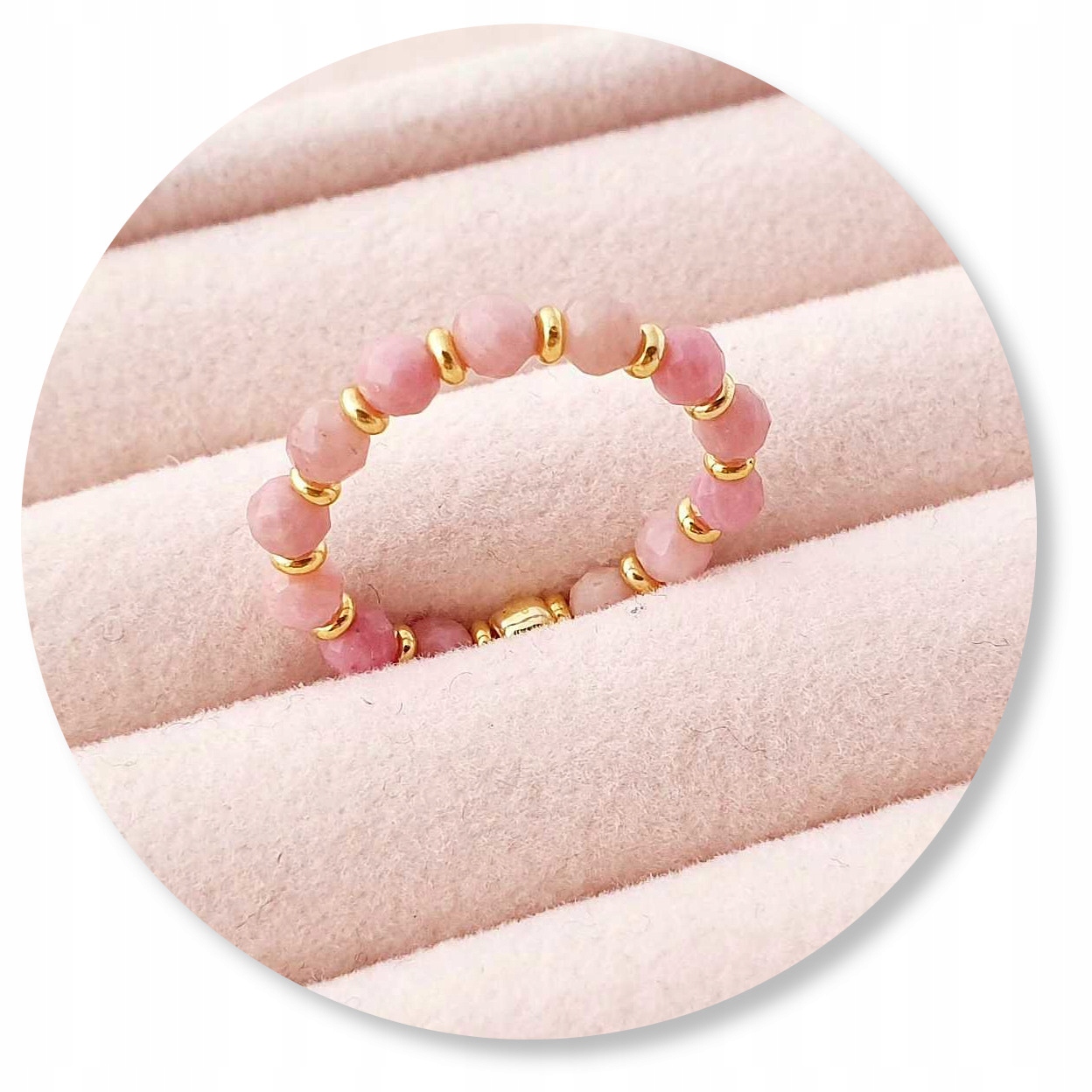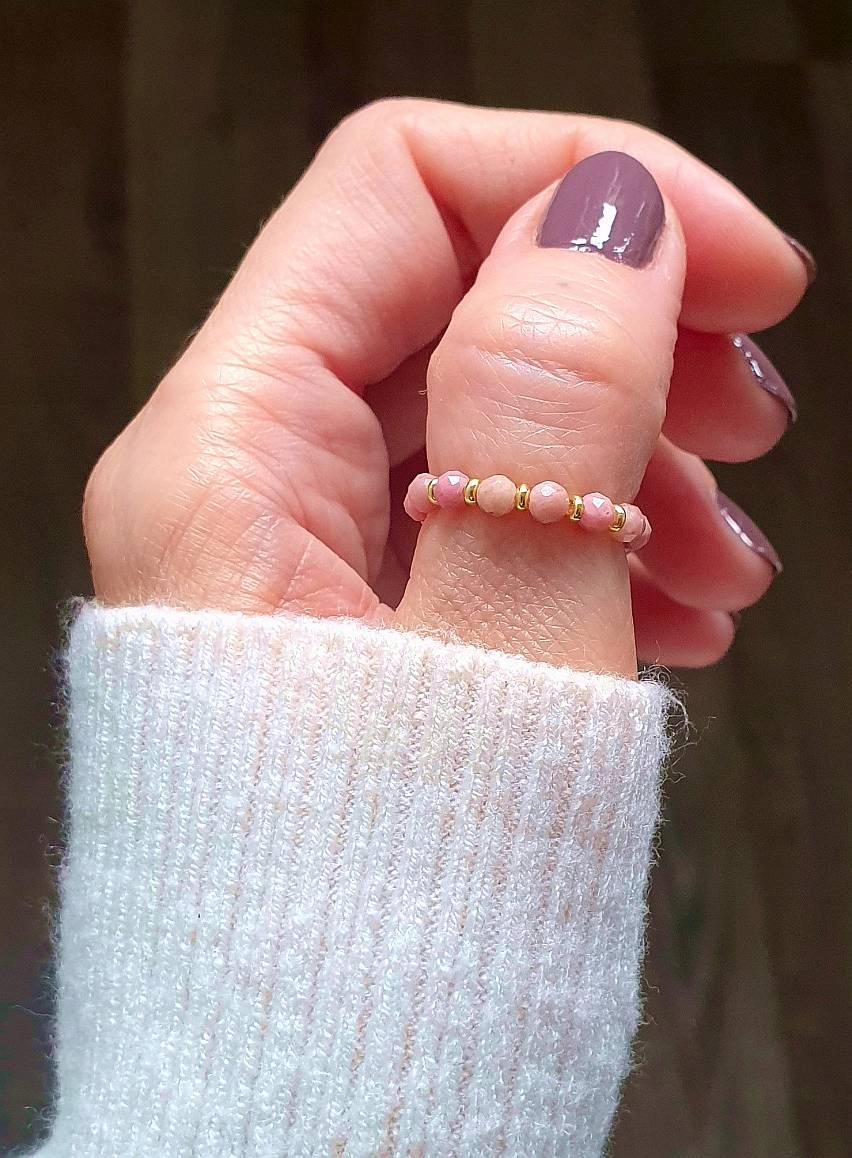 Ми пропонуємо кільце, виготовлене на гнучкій еластичній смузі з натуральними каменями: обличчя rodonit 3 ммн та оцинковані розпірки/шини.