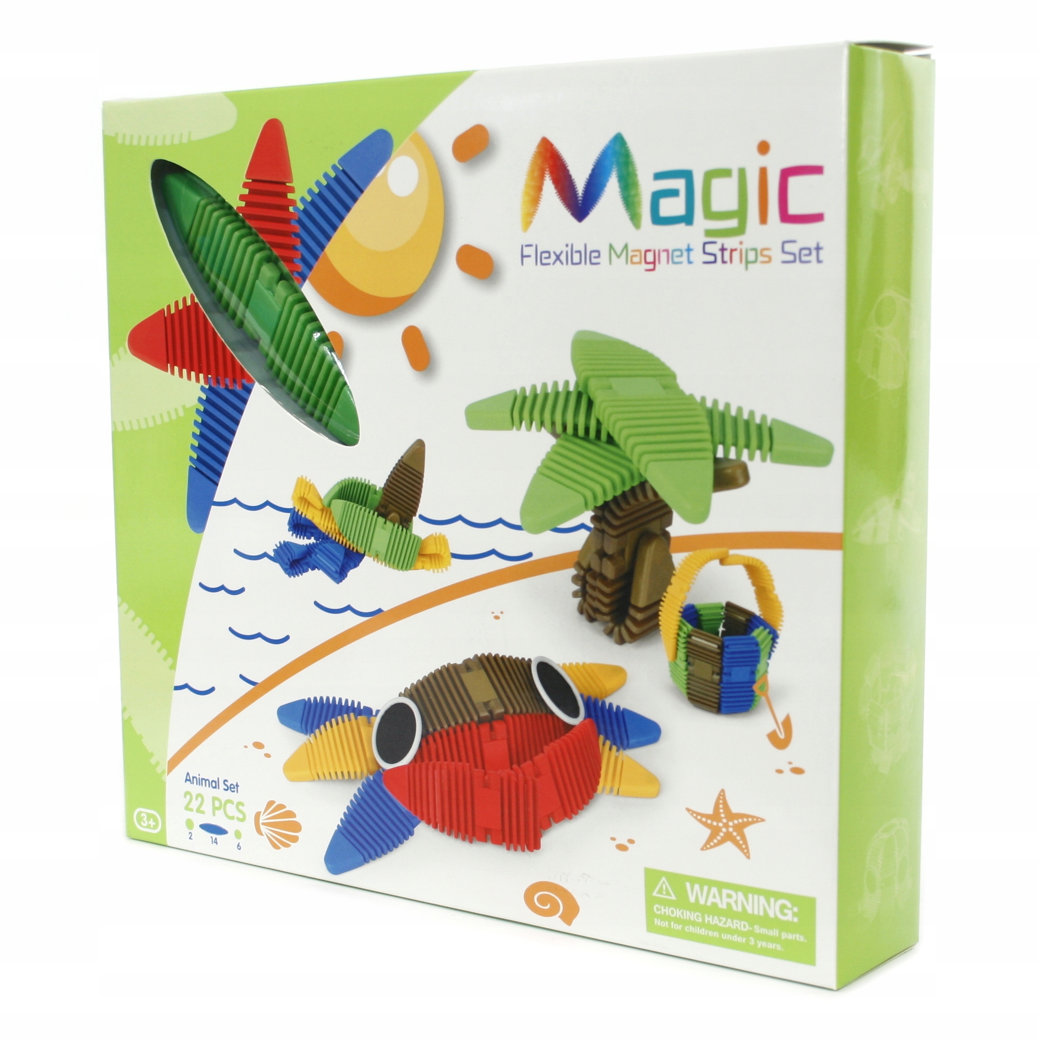 Набір складається з магнітних стрічок і з'єднувальних елементів. Унікальна форма та матеріал дозволяють дітям легко згинати, з’єднувати або складати магнітні смужки разом, створюючи різні форми.