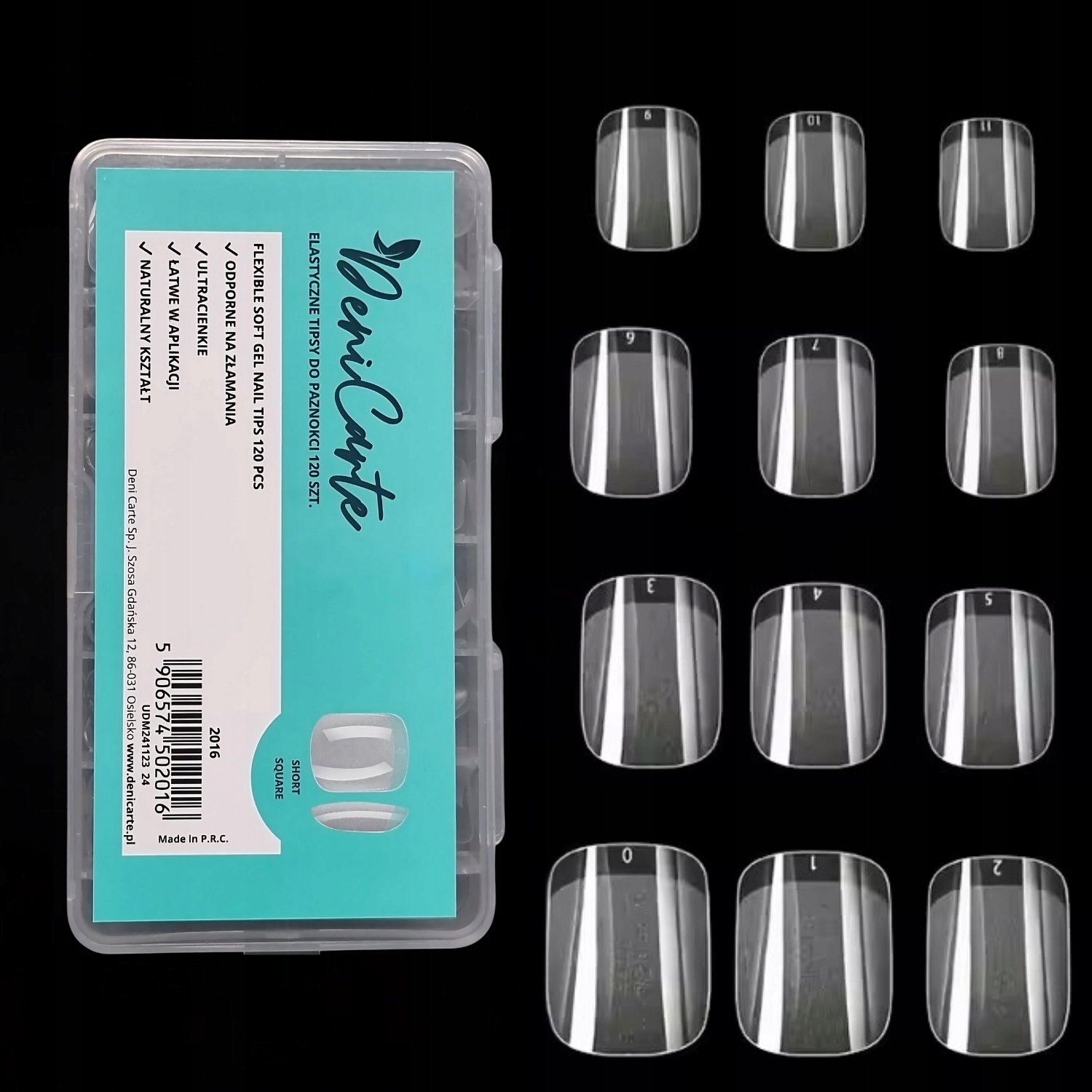 ГНУЧКІ ПРОЗОРНІ НАКОНЕЧНИКИ 120 ШТ. М'ЯКИЙ ГЕЛЬ КОРОТКИЙ КВАДРАТ КОРОТКИЙ КВАДРАТ