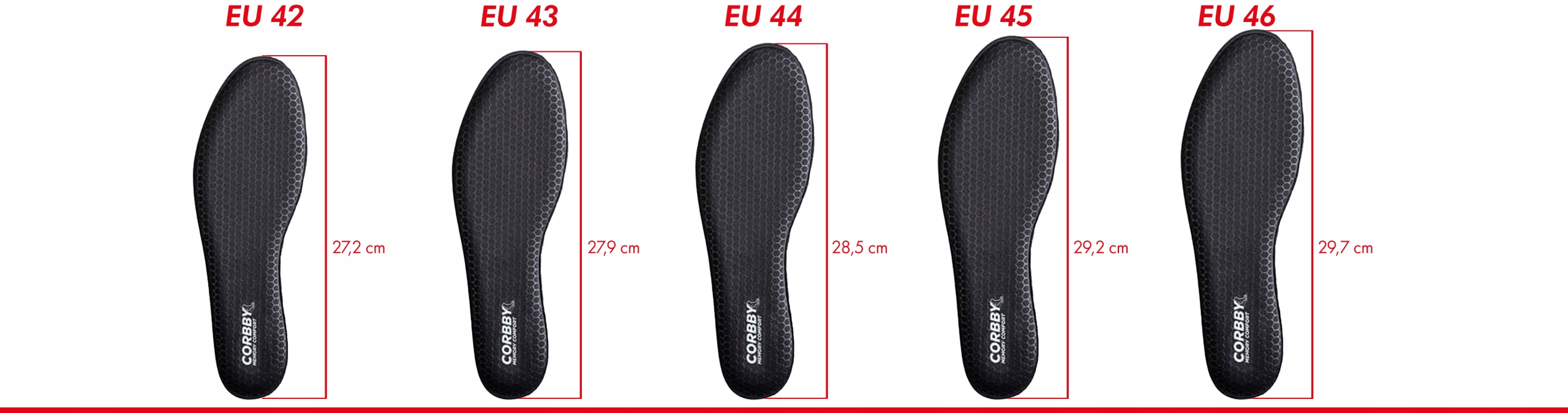- Доступний у різних розмірах - від розміру 35 до розміру 46, щоб забезпечити ідеальну відповідність індивідуальним потребам користувача