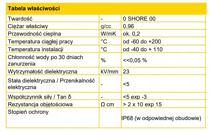 Створює так звану «незастигнучу ущільнювальну гуму» з постійна робоча температура: -60°C/+200°C та діелектрична міцність >23 кВ/мм.