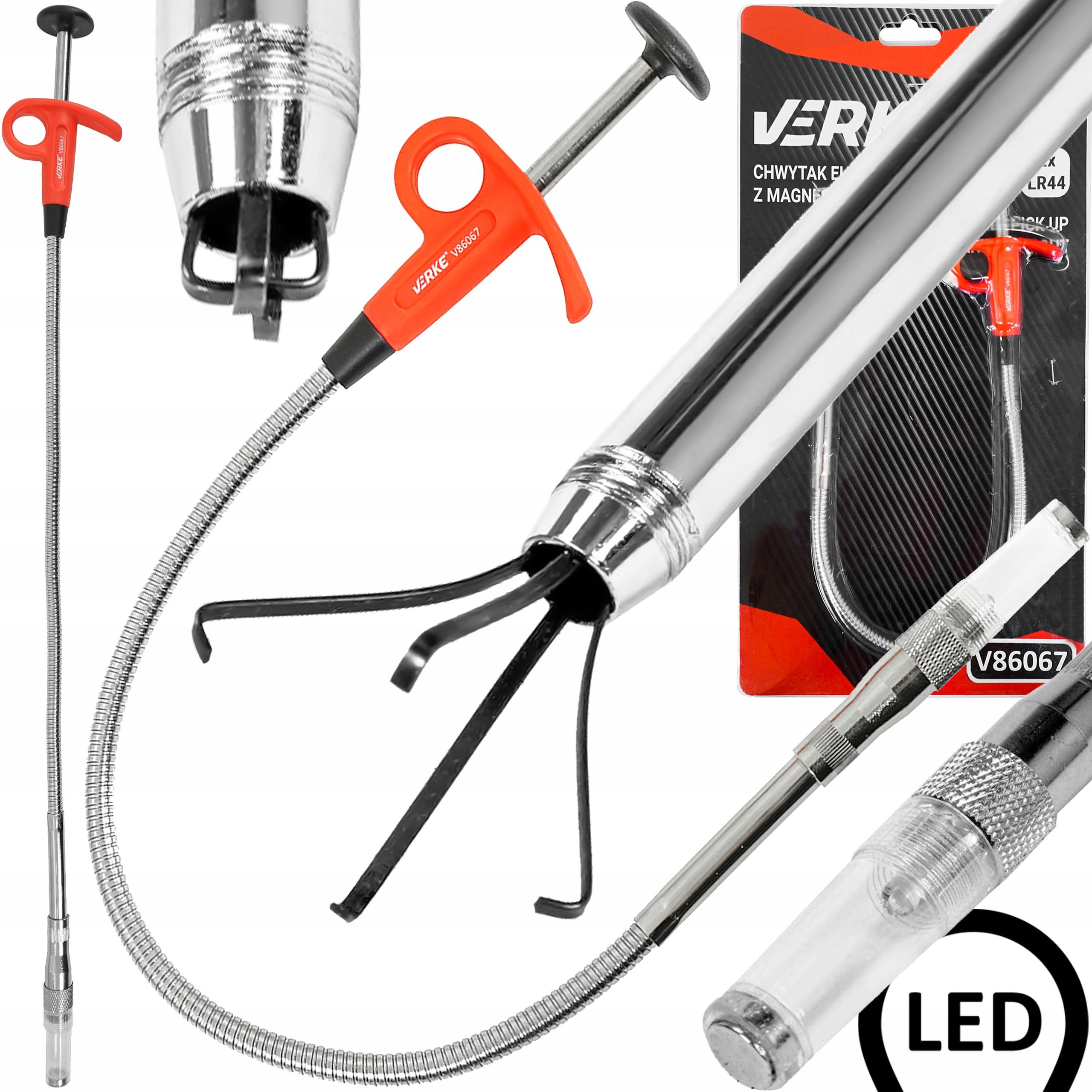 3in1 підйомник. Комплект включає магнітну, кігті та світлодіодну підсвічування. Розроблений для роботи в важких для досягнення та темних місць