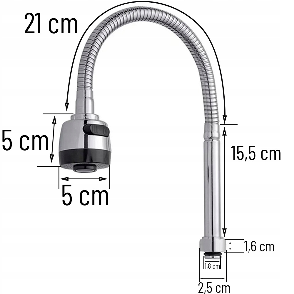Кухонний акумулятор з довгим гнучким носком - це практичне та естетичне рішення для кожної кухні. Нис з довжиною до 45 см, дозволяє комфортно мити посуд та фрукти, а також досягати важко, щоб дістатися до місця в раковині. Екранирована виготовлена з гнучкого матеріалу, тому ви можете вільно зігнути його, щоб адаптувати своє положення до ваших потреб. Скрізь має 2 режими дії: зосереджена та розсіювана. Це рішення забезпечує заощадження води та зручність використання.