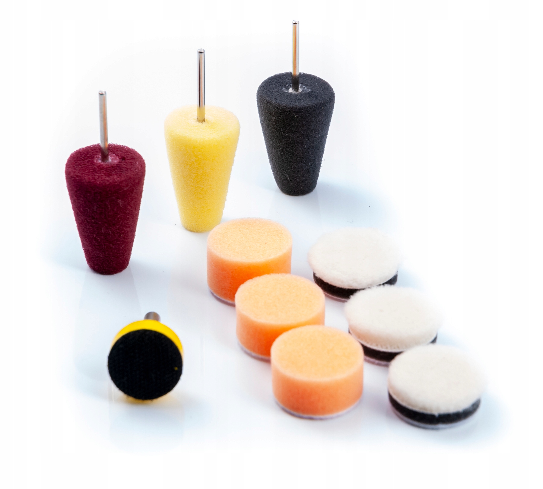 професійний, гнучкий подовжувач для ротаційних полірувальних машин. Полегшує роботу у важкодоступних місцях, забезпечуючи комфортне використання під час полірування дисків, ободів, стійок, фар або простору під дверними ручками. У набір входить підкладка діаметром 25 мм і 9 міні полірувальних дисків.