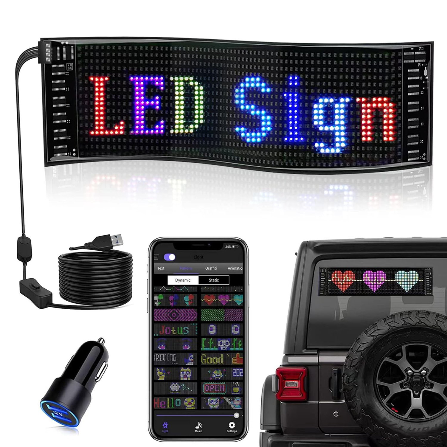 - Останній світлодіодний знак, який дозволяє безпечно розмістити його на передньому та задньому вікні автомобіля;