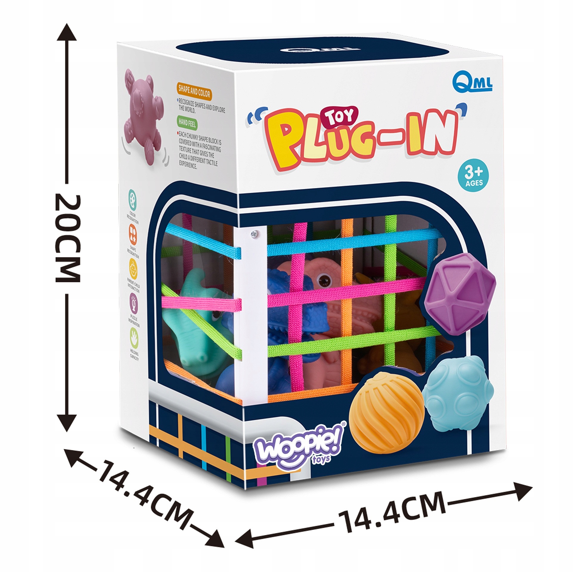 Гнучкий сенсорний кубик від бренду WOOPI стимулюватиме розвиток вашої дитини! Дитяча гра полягає в складанні динозаврів в навчальний куб і з нього. Під час гри дитина розвиває органи чуття та удосконалює ручні навички. Кожен із 5 динозаврів виділяється, що викликає цікавість у дитини настільки, що вона хоче дістати їх і покласти назад у сортер. Крім того, дитина може повертати голову динозавра на 360 градусів і розвивати свої ручні навички. Блоки м’які і можна стискати та мають однакові форми та кольори для розвитку вашого сенсорного, розуму та b>тішить дитину - заохочує експериментувати. Динозаврів також можна використовувати для навчання кольорів. Кубик-сортер має гнучкі різнокольорові гумки, які приємні дитині. Незамінна іграшка для дитини раннього віку!