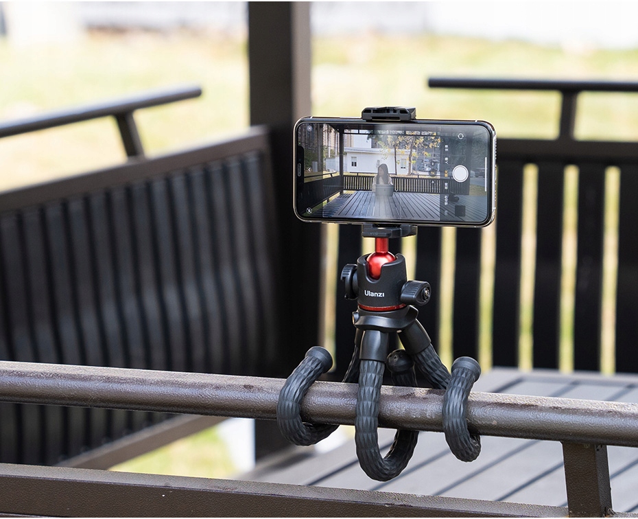 - Гнучкі ніжки можна вільно формувати, легко адаптуються до нерівних поверхонь завдяки чому штатив можна встановити на круглих профілях, таких як балка, балюстрада, дерево, труба, паркан тощо.
