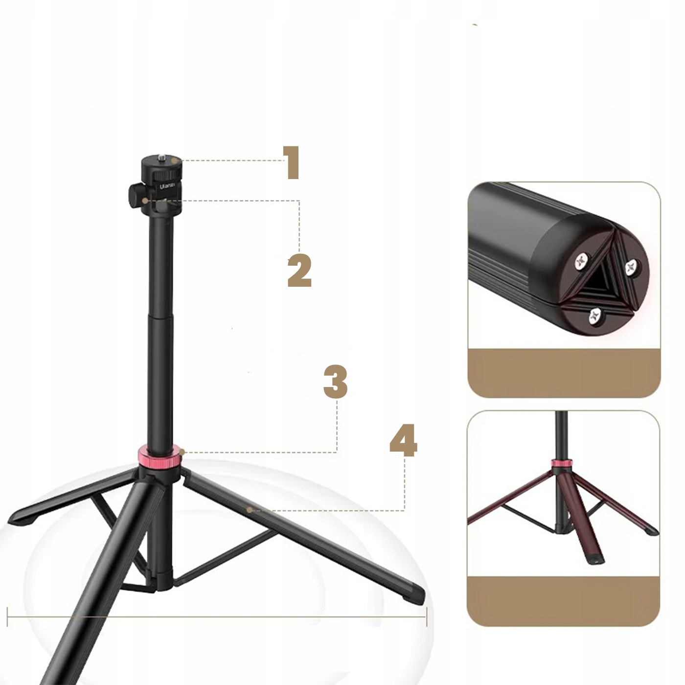 - Сумісність – різьба 1/4 дюйма підходить для більшості пристроїв, включаючи камери, відеокамери, дзеркальні камери та смартфони