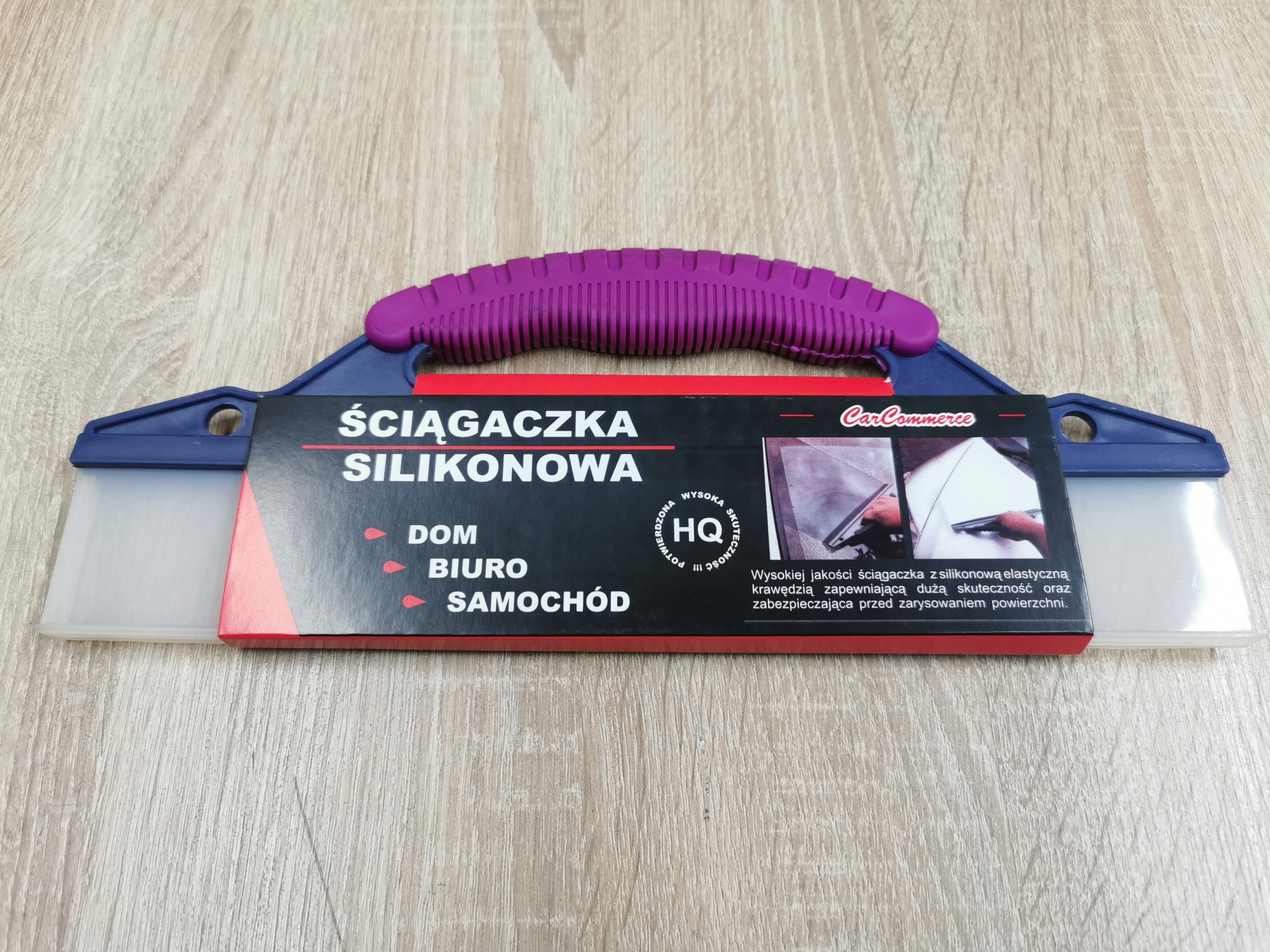 Високоякісний, гнучкий ракель для води. Завдяки використанню силіконової ручки він ідеально адаптується до форми поверхні та має незначне тертя щодо поверхні, що висушується.