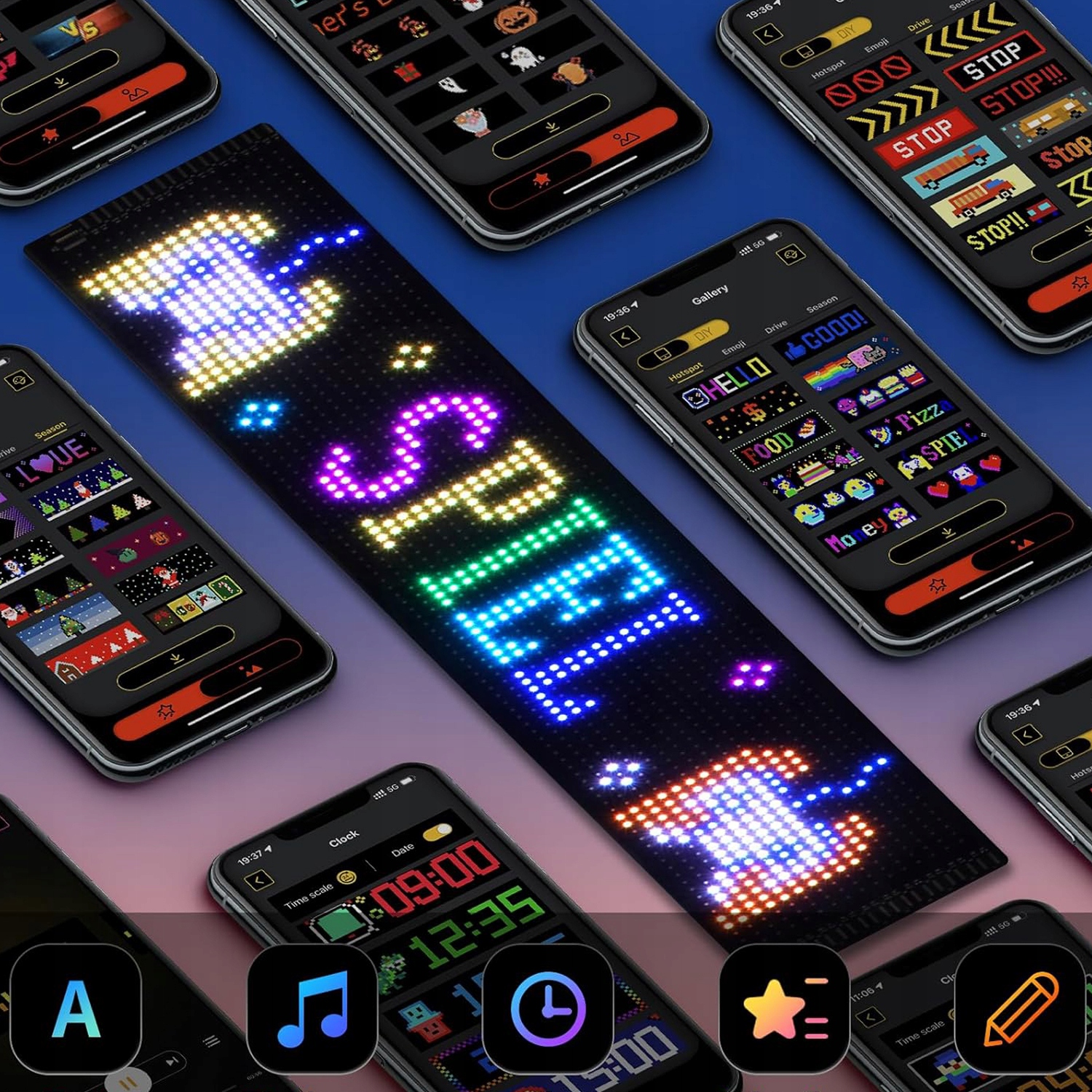 - Ви можете легко завантажити або використовувати без реєстрації. Після підключення через Bluetooth просто використовуйте готові зображення або анімацію.