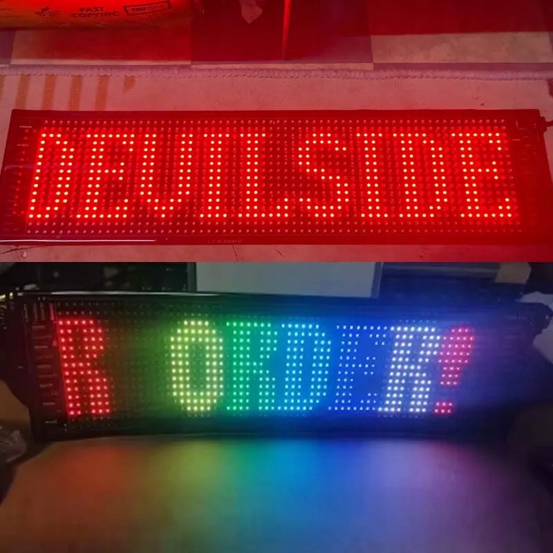 - повнокольоровий світлодіодний екран 16 x 64 пікселів (RGB ) - супер яскравий; Підтримка прокручування. Використовуйте цей світлодіодний знак, що прокручується, щоб легко показати людям ваші рекламні ефекти. Візерунок чіткий, а спосіб відображення різноманітний.