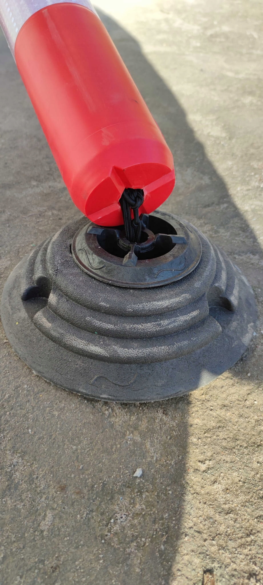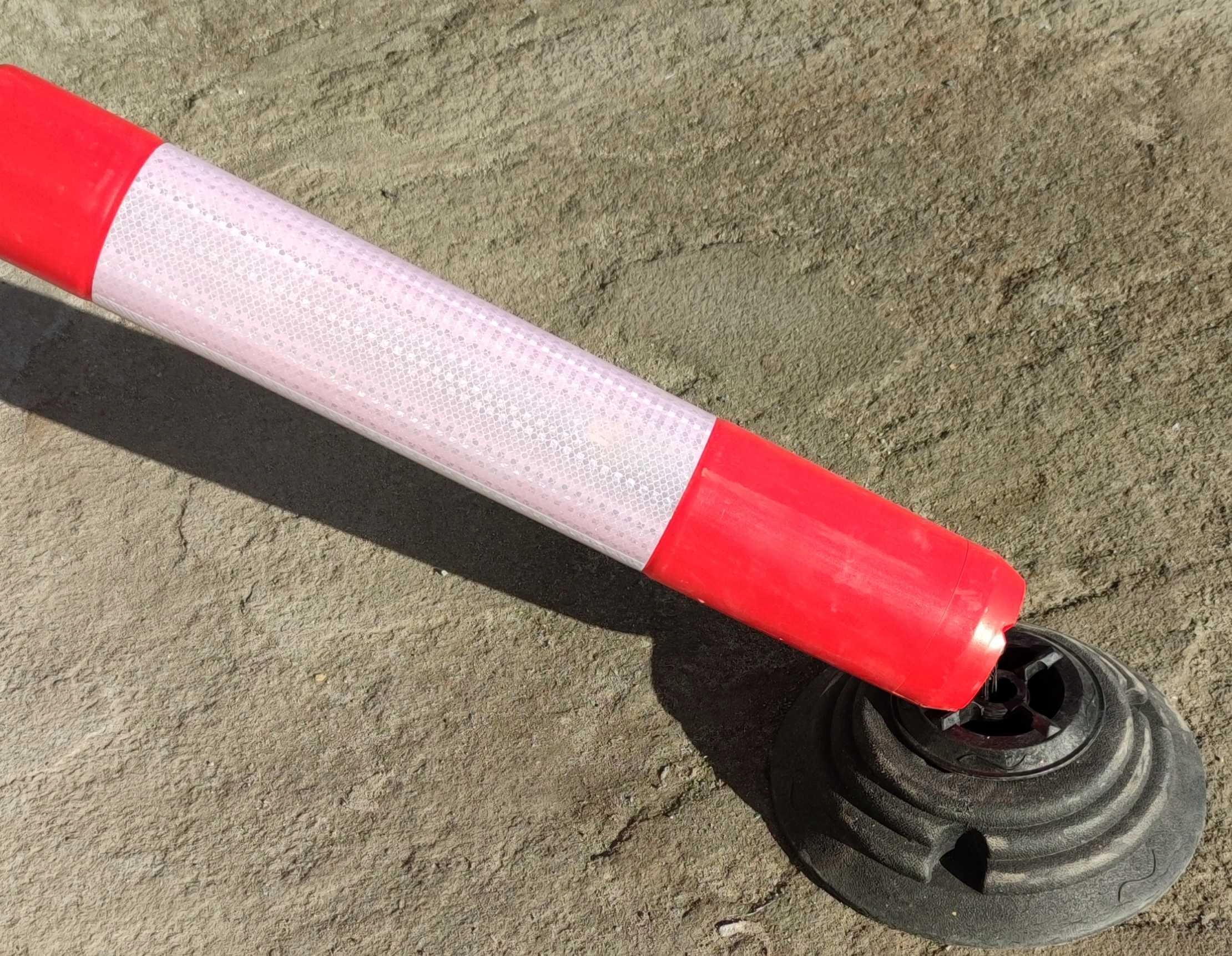 Виготовлений із гнучкого пластику червоного кольору, покритого світловідбиваючою плівкою. Варто звернути увагу на зручність зберігання, якою характеризується кожен дорожній стовпчик цього типу.