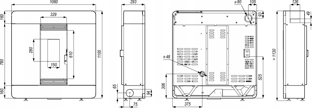 Ємність паливний бак: 16 кг. стандартна висота 2,5м. Наведені значення були розраховані для мінімальної потужності 30% і максимальної потужності 100%. Діапазон регулювання висоти пристрою від 20 до 40 мм.
