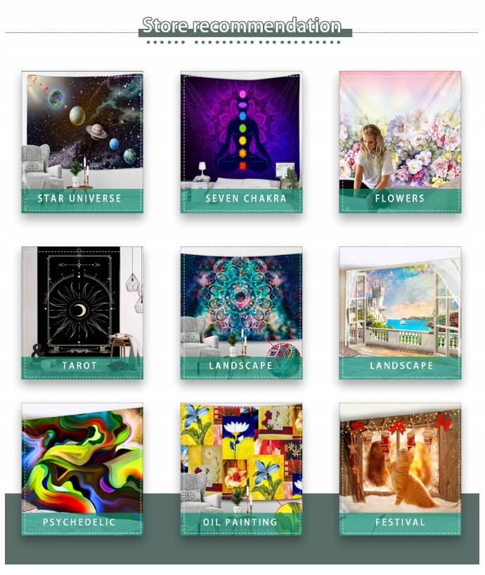 【Продуктивність продукту】 Цей гобелен виготовлений з високоякісної тканини, яка є м'якою, міцною, шкірною, дружньою та легкою. Незалежно від того, використовується він всередині чи зовні, його можна легко повісити і скласти. Підходить для кожного етапу та сезону.