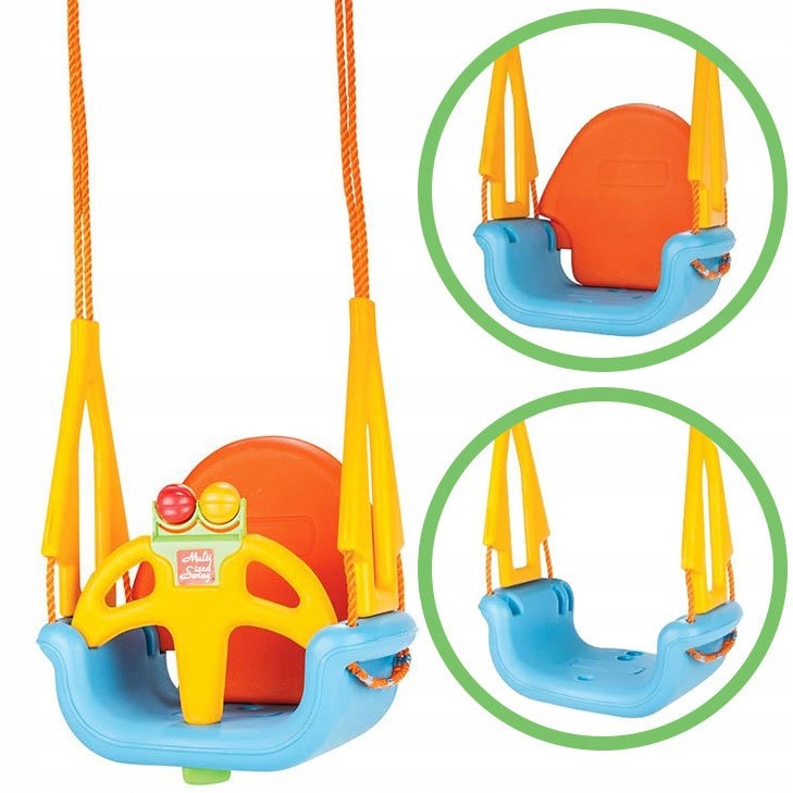 - 3 варіанти використання: дитячі гойдалки зі спинкою та чохлом для ніжок, гойдалки зі спинкою або гойдалки без спинки