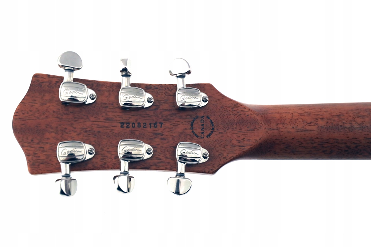 - Знімчики: 2 хамбакери Godin Custom, 1x Custom Cajun Nickel односпіральний
