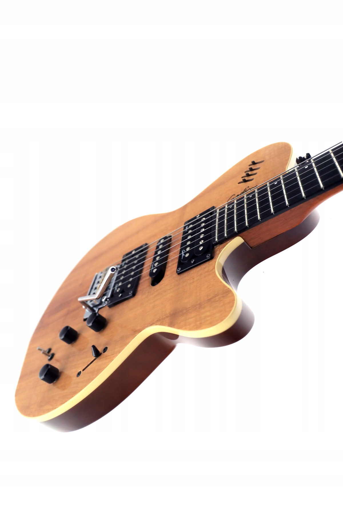 Сама коробка також унікальна - вона не плоска, як у Fender або PRS, а "зігнута" в різних місцях, тому п'єзозвуки