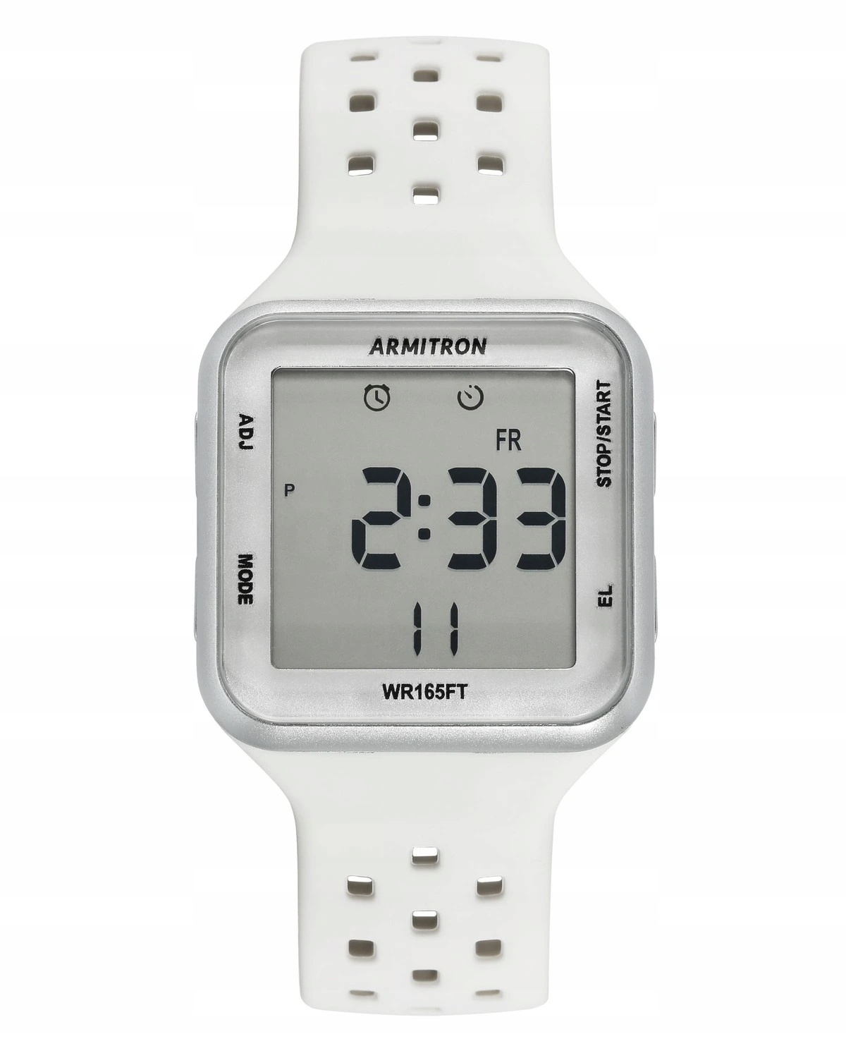 Спортивний годинник унісекс Armitron з витонченою формою, білим ремінцем і яскравим багатофункціональним дисплеєм.