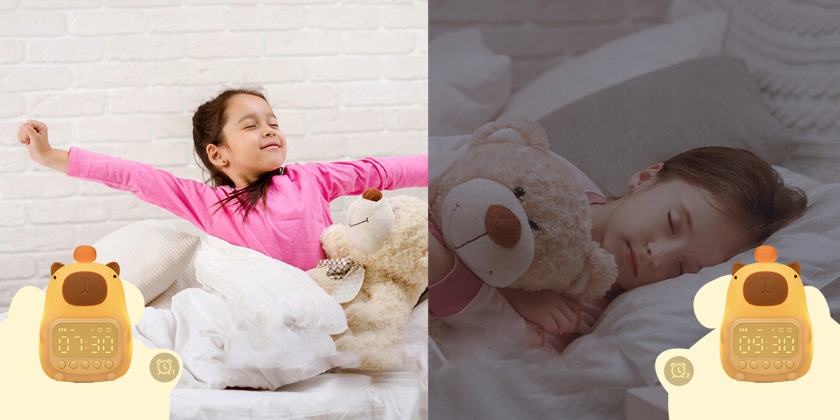 оснащені двома сигналами тривоги та 5-хвилинною функцією дрімоти, цього милого будильника для дітей гарантує, що діти прокинуться вчасно без зволікань.