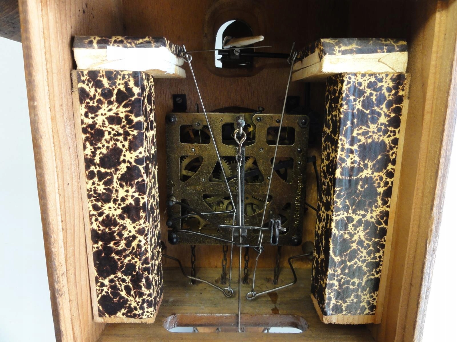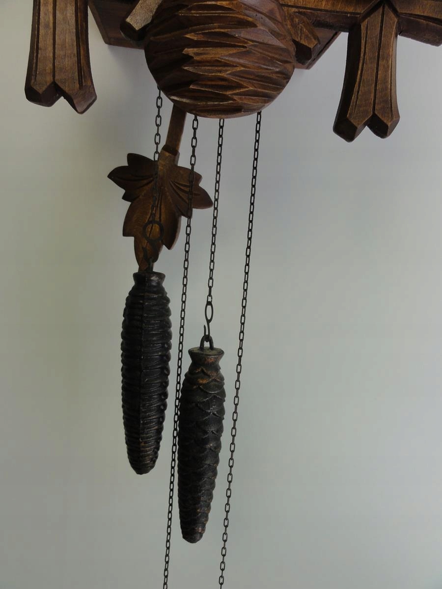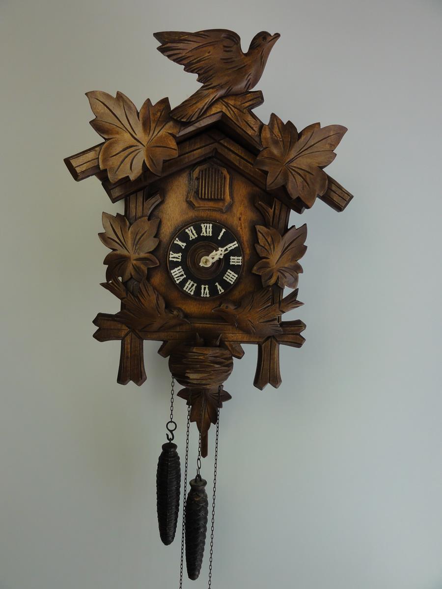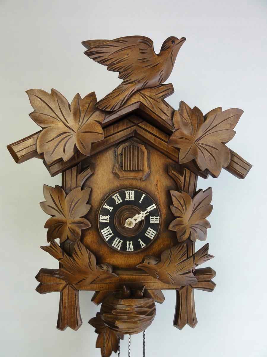 *годинник іде точно, повна та півгодини оголошує зозулю та побиття гонга, під час руху двох птахів на передній частині годин (вони годують пташенят, що сидять nest),