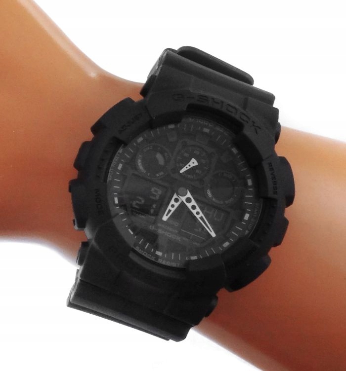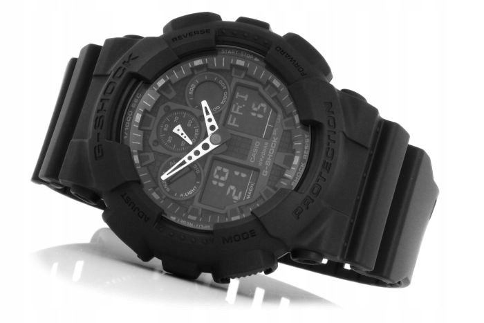Модель G-shock GA-100-1A1ER є однією з найцікавіших моделей серед усього асортименту спортивних годинників. Ідеальні розміри, гідні справжнього чоловіка, і ряд функцій роблять її дуже популярною моделлю. Чорний корпус і ремінець ідеально поєднуються з чорним циферблатом і цифровим дисплеєм. Модель має секундомір з функцією тахіметра, таймер зворотного відліку, будильники з функцією повтору, світовий час, вічний календар і світлодіодне підсвічування.
