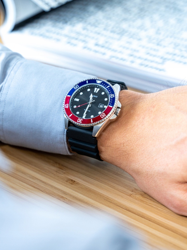 Закохайтеся в класичний спортивний вигляд і практичні функції Casio MDV-107-1A1VEF, ідеального аксесуара для кожного чоловіка. CASIO MDV-107-1A1VEF є частиною популярної серії Diver Sports, яка поєднує в собі спортивний вигляд із чудовою продуктивністю.
