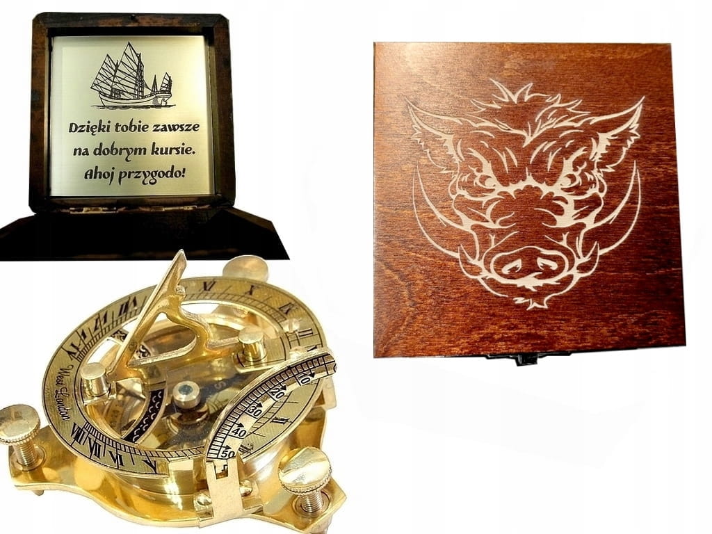 Я запрошую вас придбати вражаючий компас із сонячним годинником. Повністю виготовлений з латуні. Міцно виготовлений. Скляне скло. Компас має замок. Вся справа на трьох різьбових ніжках.