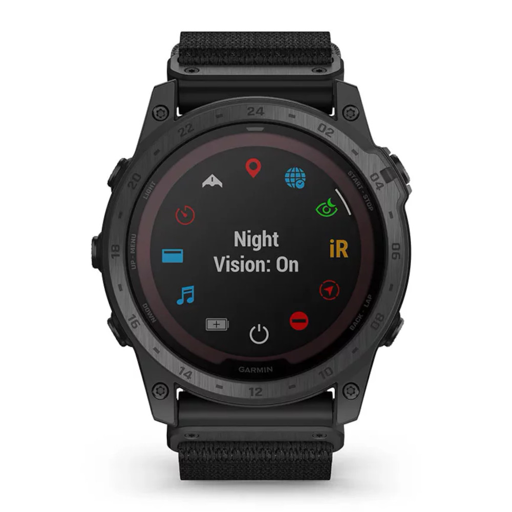 Завдяки новітнім технологічним рішенням і високоякісним матеріалам, які використовує Garmin, аудиторія стає все більшою. Цей тактичний мультиспортивний GPS-годинник преміум-класу має сапфірове скло Power Sapphire із сонячною зарядкою, традиційні кнопки та сенсорний екран, а також спеціальні тактичні функції, а також вбудований калькулятор Applied Ballistics, карти, музику, функції для розширеного навчання та інші можливості. Легкий 51-міліметровий корпус кріпиться до 22-міліметрового нейлонового ремінця, який можна ідеально відрегулювати на зап’ясті, щоб він ніколи не заважав. Найкращі функції тренувальних годинників, високоякісний корпус і ще більший, завжди відкритий дисплей з ємною батареєю, що дозволяє довго використовувати та використовувати під час найнебезпечніших і вимогливих видів діяльності.