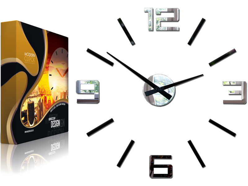 КВАРЦОВИЙ НАСТІННИЙ ГОДИННИК - СРІБЛИВИЙ XL Дзеркало та чорний 60 СМ