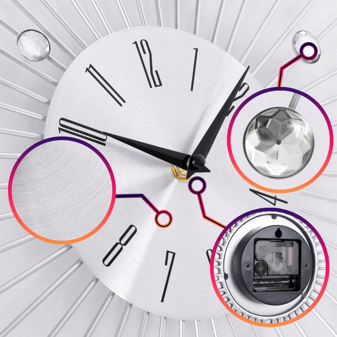 Наш настінний годинник Esperanza BOSTON використовується не лише для показу часу, але й є чудовою прикрасою будь-якого інтер’єру. На випромінюючих променях є кристали різної форми, тому стіна прикрашена «діамантами». Завдяки своєму елегантному та стильному дизайну він чудово прикрашає квартири, офіси, магазини та ресторани. Дає дивовижний 3D ефект! Крім того, наш годинник дуже точний. Ви повинні мати його.