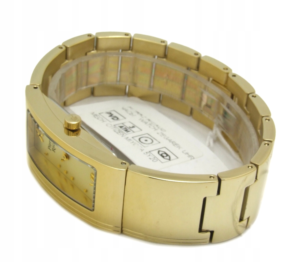 - Сталевий корпус і браслет PVD золото: характерний сплав з найвищим ступенем стійкості до корозії. Кінцевий продукт, залежно від моделі, може бути оброблений багатьма способами: полірований, атласний тощо (ми можемо вкоротити браслет до заданого обхвату руки).