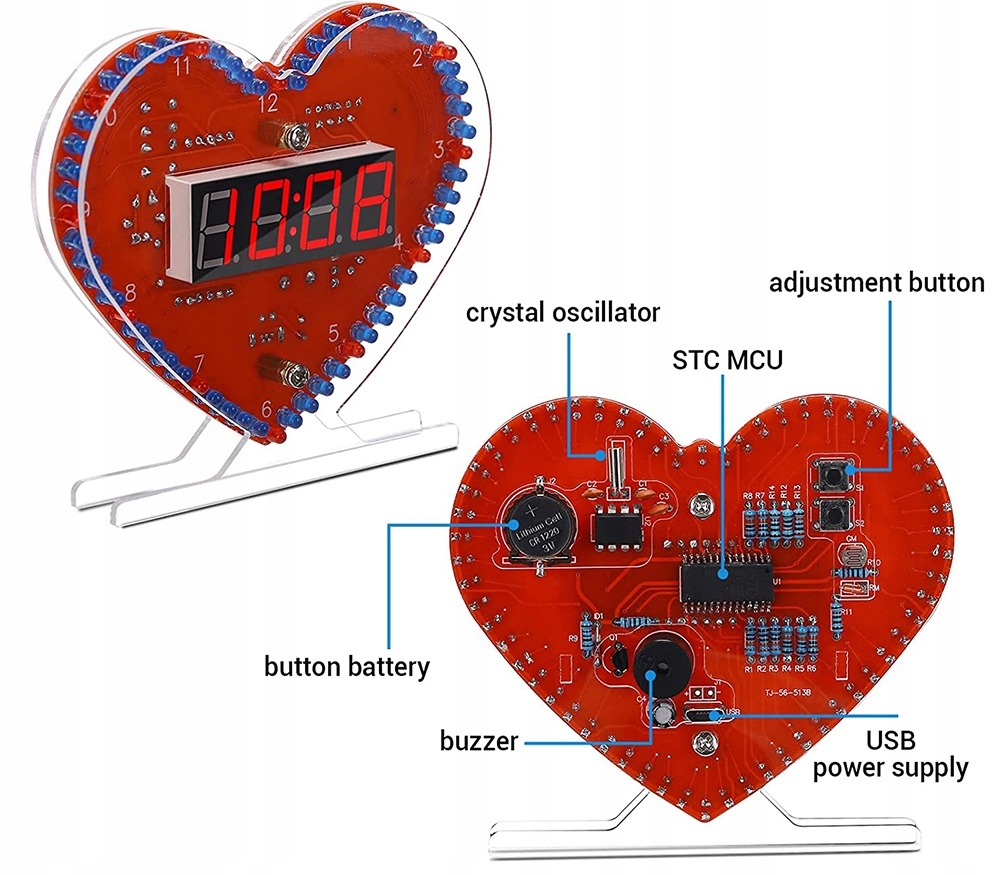 Годинник Серце 4-бітний будильник, дата, термометр DIY KIT