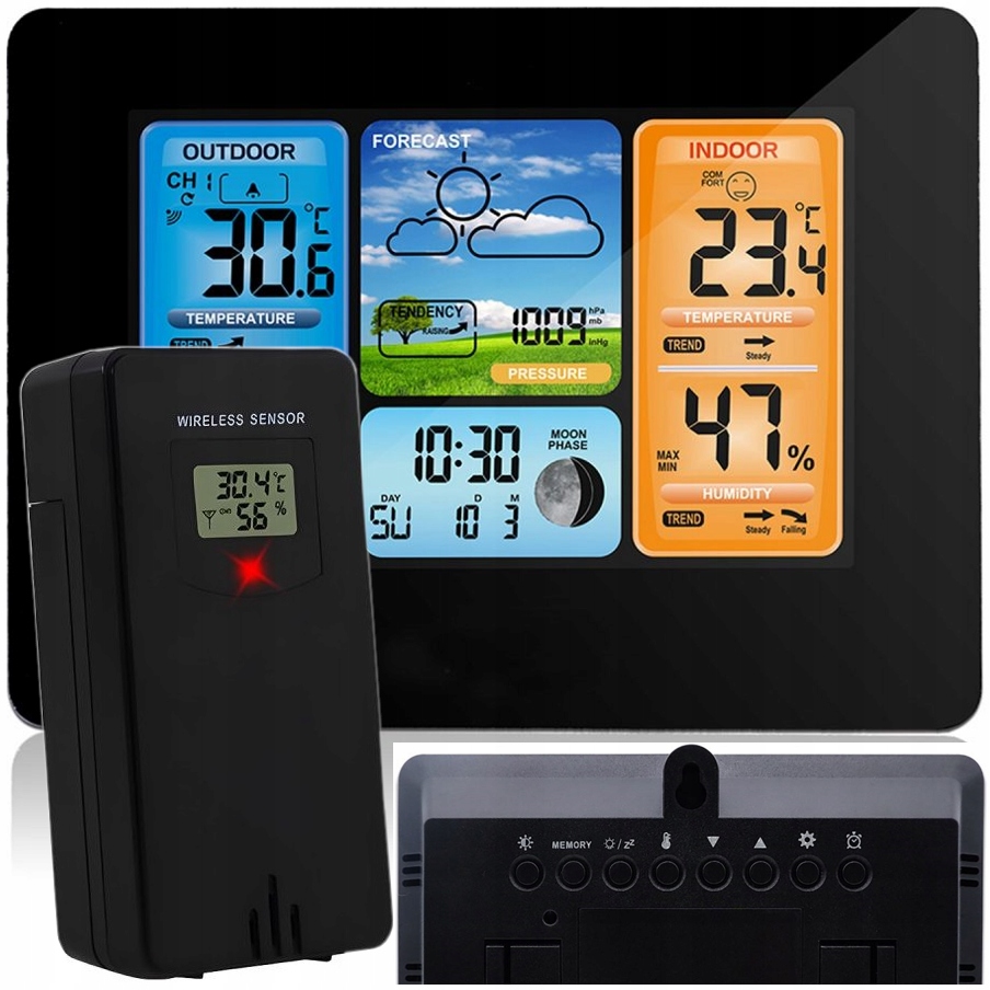 Ця станція є багатофункціональним пристроєм для зчитування температури, вологості, а також часу, дати та часу, з РК-дисплеєм, який дозволяє чітко зчитувати відображені значення, він має, крім іншого, функція прогнозу, він має вбудований будильник і режим календаря.