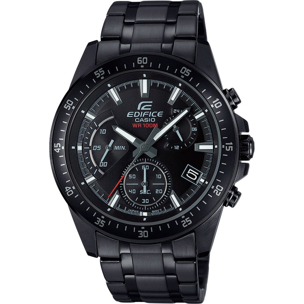 Чоловічий годинник CASIO EFV-540DC-1AV з колекції Edifice японського виробника. Оснащений надійним кварцовим механізмом з точністю кроку +/- 20 секунд на місяць. І корпус, і браслет повністю виготовлені з високоякісної нержавіючої сталі, окисленої до міцного чорного кольору.