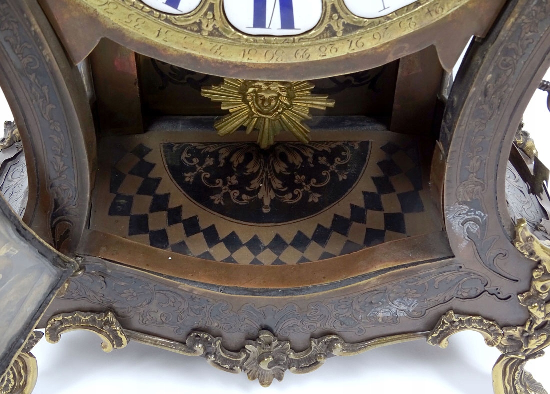 Маркетрі з панцира черепахи та латунного листа, бронза, механізм із підписом H&F Paris, приблизно 1880 р. .