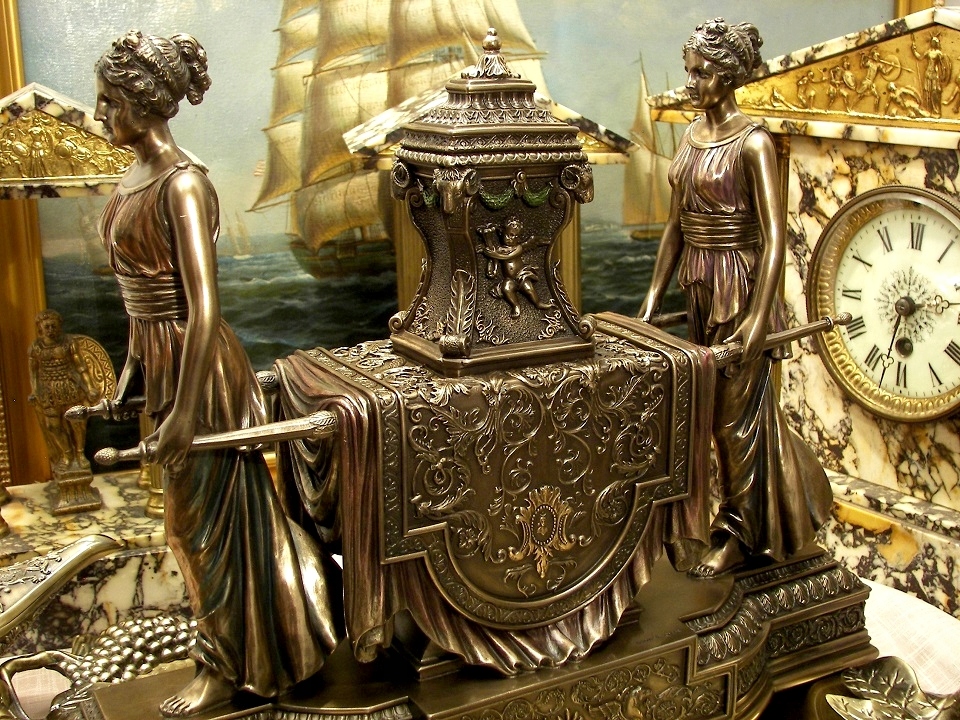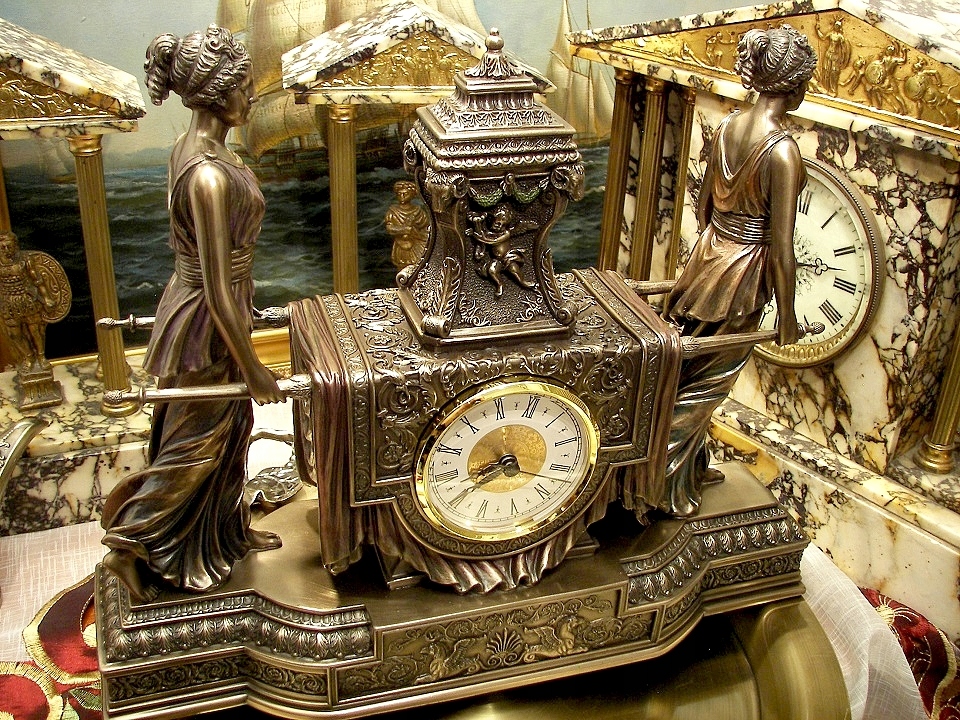 Запрошую вас придбати чудовий годинник, виконаний у стилі бароко з елементами класицизму. Натурі виглядає набагато краще. Бренд Veronese гарантує якість та зовнішній вигляд. Весь виготовлений із матеріалу полірезин, покритий латунню, ручний пофарбований.Годинник електричний живиться від однієї батарейки так звана АА пальчикова