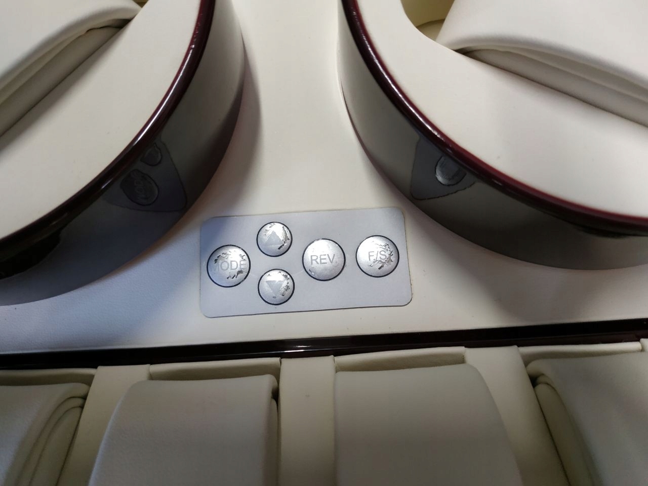 Репрезентативний програмований ротомат із великою вітриною на 10 годинників. Гарні матеріали та ретельна обробка. Елегантне поєднання бордоської червоної фарби піаніно, кремового інтер’єру та елементів золотого кольору.