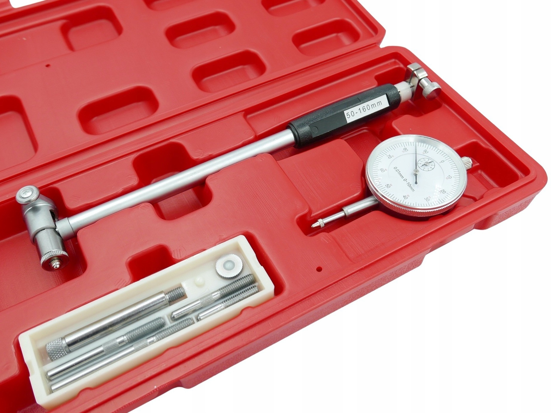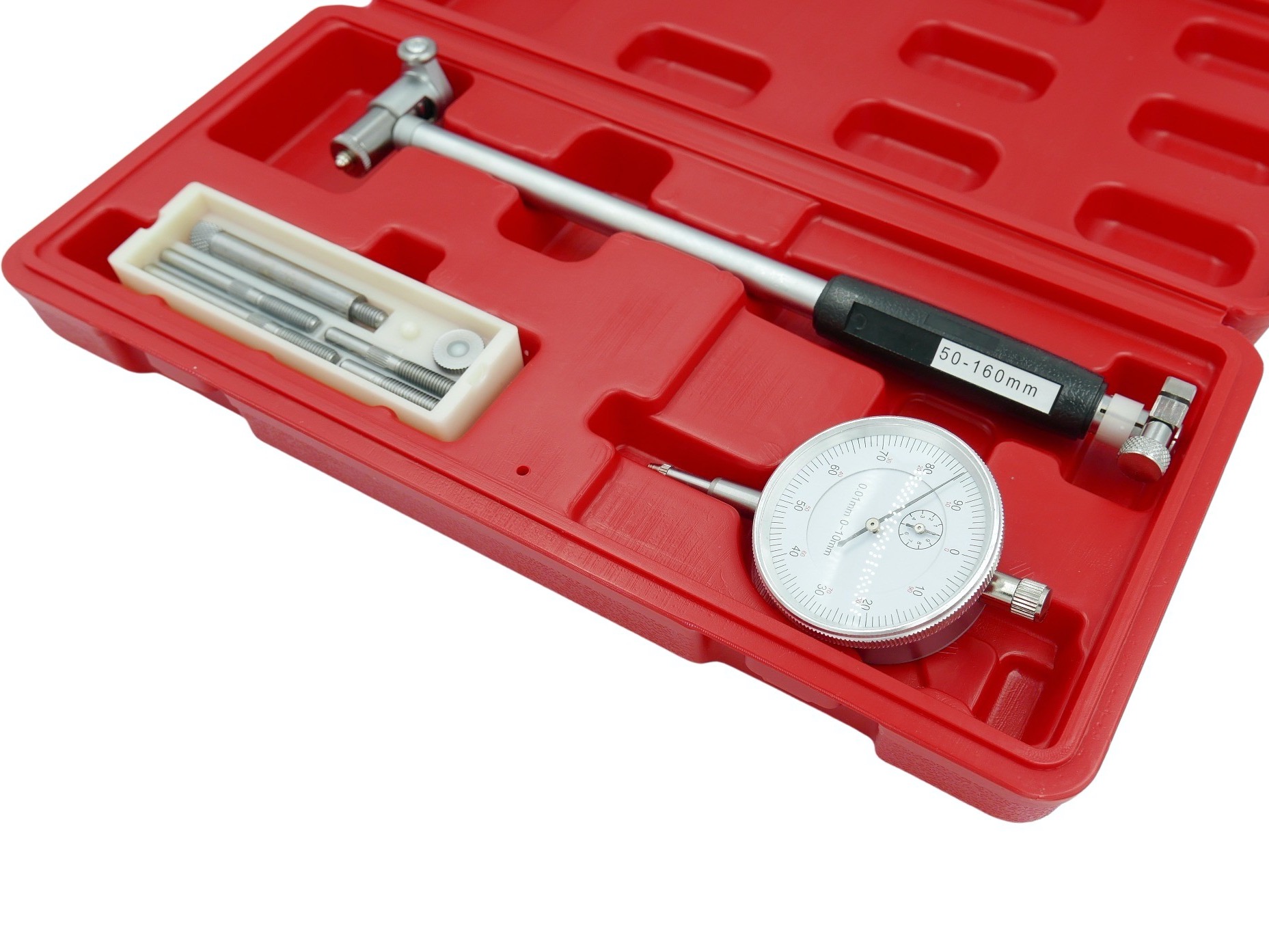 Ціферблатний індикатормістить циферблатний індикатор із поділкою 0,01 мм. Прилад оснащений механізмом (клином або важелем), який змінює бічний рух вимірювального наконечника в результаті зміни діаметра на поздовжній рух штифта датчика. Для діапазонів до декількох мм прилади будуються з градаціями 1-2 мм. Для великих розмірів використовуються регульовані подовжувачі. Похибка вимірювання залежить від номінального розміру отвору, точності показань датчика, точності еталону, умов вимірювання (температури) та кваліфікації оператора та коливається від кількох до десятків мікрометрів.