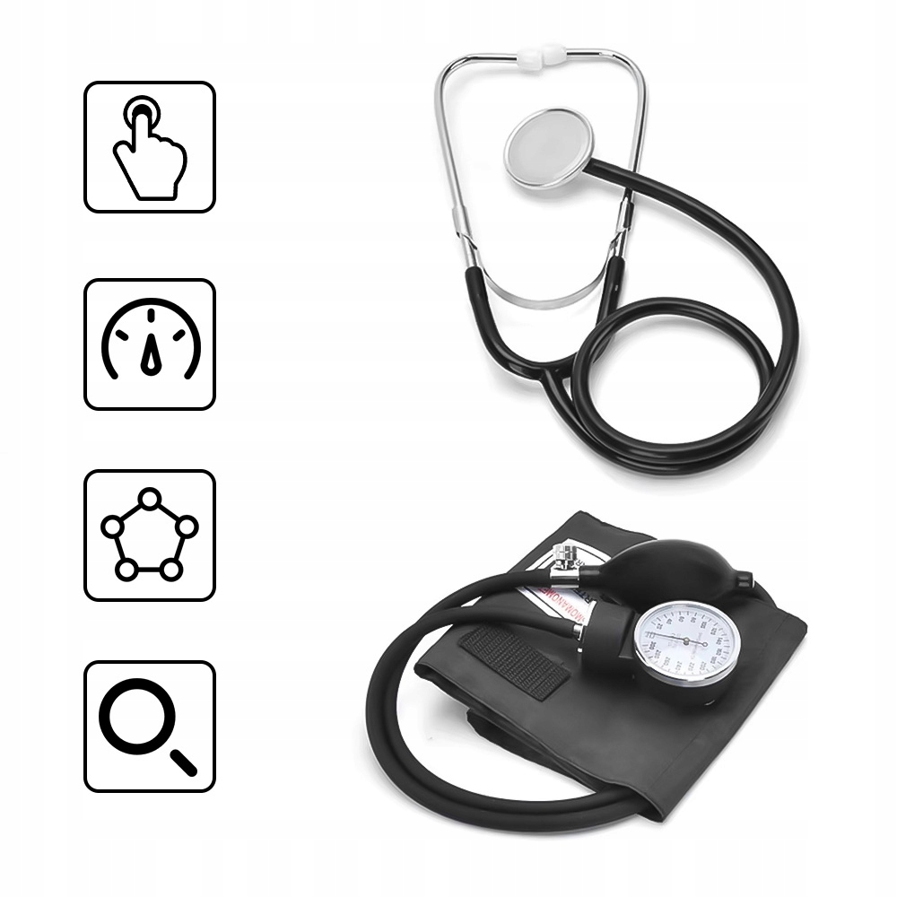 Специфікація продукту: містить антероїдний манометр, клапан повітряного гачка та міхур для надуття сталескопом довжиною довжиною 70 см у комплекті з зручним чорним корпусом для зберігання на блискавці. Оснащений зручними кінчиками для вуха, які доповнюють ефективний дизайн.