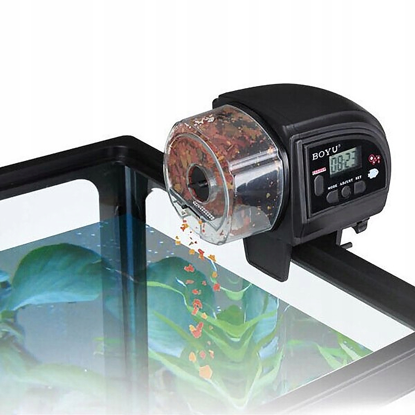 Автоматична годівниця для акваріумних риб. Запрограмуйте кількість і частоту годування рибок і не переживайте, що вони будуть голодувати під час вашої відпустки. Для кріплення на кришку або край акваріума.