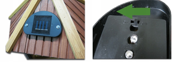 Перед першим використанням обов’язково ввімкніть модуль. Перемикач розташований під дахом годівниці.