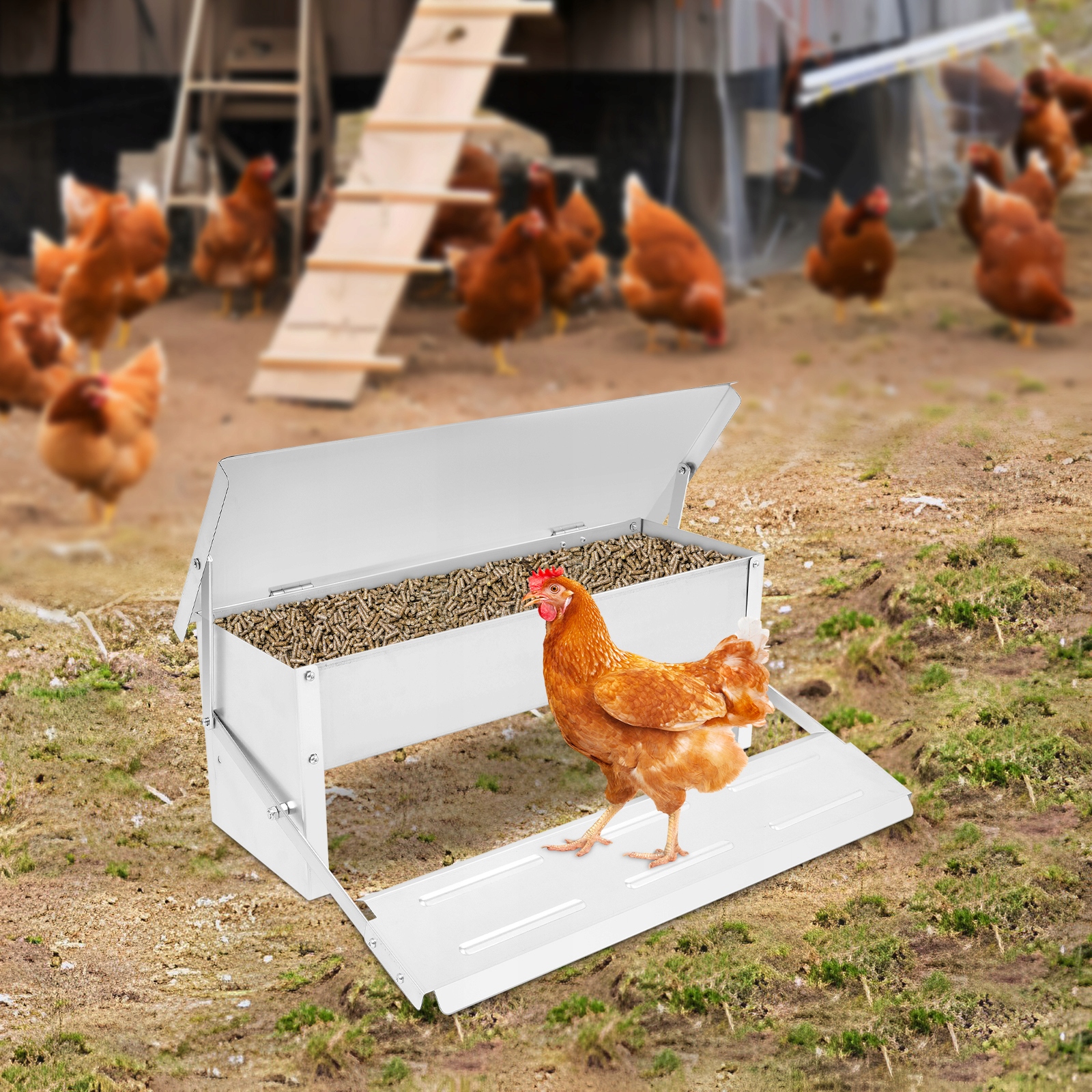 ✅ Продуманий дизайн: Коли курка наступила на педаль, кришка відкриється, а курка може годувати. Коли курка залишає педаль, кришка автоматично закривається, щоб захистити корм.